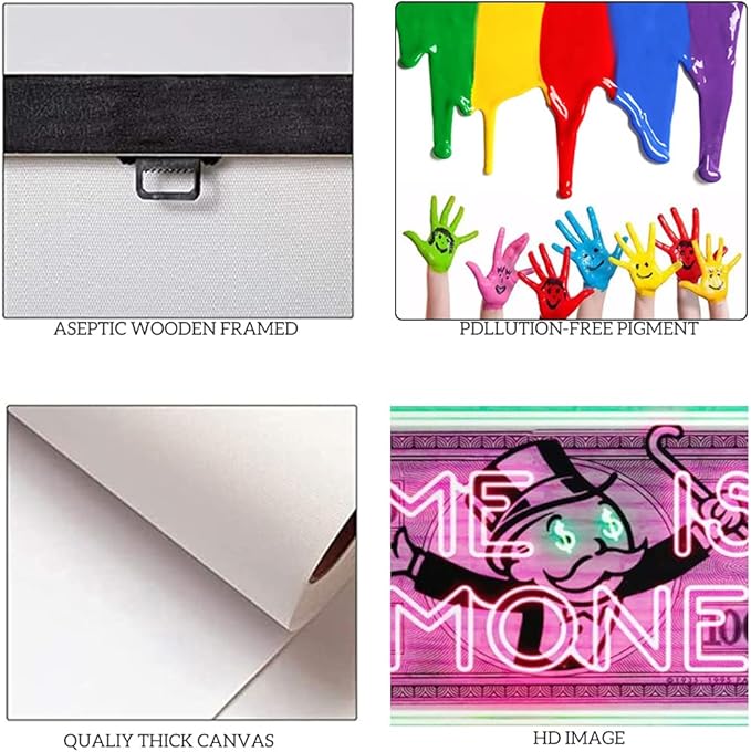 Time Is Money Show me the Money Motivational Office Canvas Art Green Pink Inspirational Wall Art Canvas Print Home Office Room Decor Inspirational Gifts for Men HD Print Framed Easy to Hang-32 Wx16 H