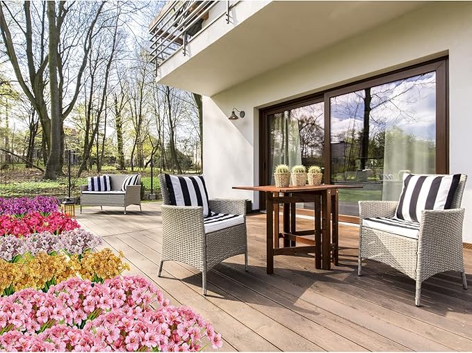 - Maintenance Free - Upscale look artificial flowers are perfect for any landscaping project or decor style without having to worry about sunlight, watering, pruning, or other maintenance. They can be used to decorate gardens, weddings, parties, windowsills, offices, etc. To make your living environment full of vitality