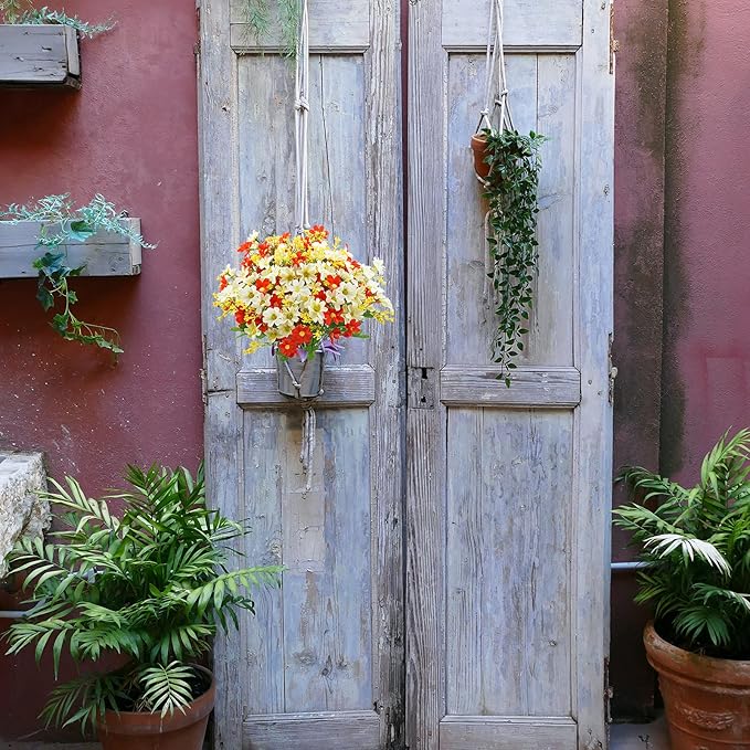 Uieke Artificial Fake Flowers, 6 Bundles Daisy Mums Flowers Outdoor UV Resistant No Fade Greenery Shrubs Plastic Flowers Indoor Outside Hanging Planter Home Wedding Office DIY Garden Porch Décor