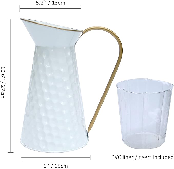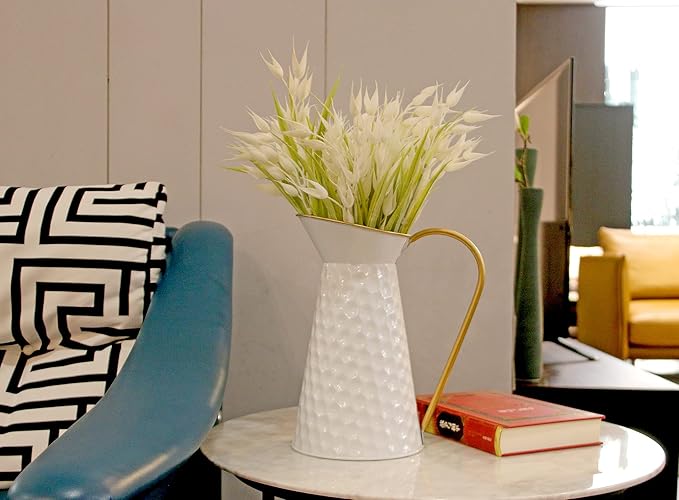 Elegant White Metal Decorative Flower Vase,Farmhouse Galvanized Pitcher,Rustic Milk Jug for Home Decor…