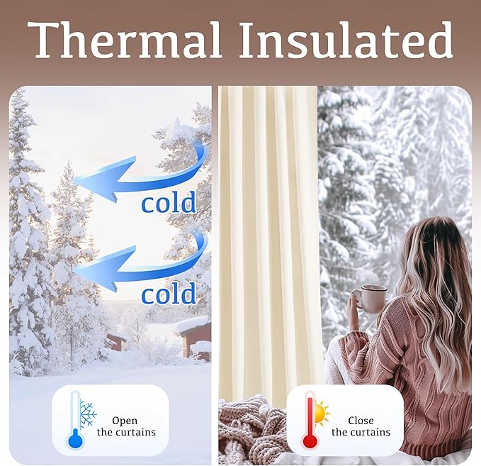 - FUNCTION: Thick heavy blackout curtains can block out 65-85% of the sunlight and UV rays (the darker colors work better). They can also reduce noising and balance room temperature by insulating against summer heat and winter chill. Provide privacy and save energy cost, protect your floors,furniture and artwork from the ravages of the sun.
