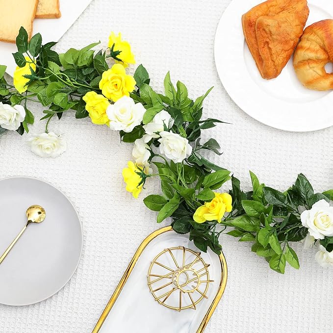 - LIFELIKE YELLOW GARLAND: The floral flower garland vines consist of light yellow roses and white roses, complement each other, turn more softer and more colorful to beauty your life
