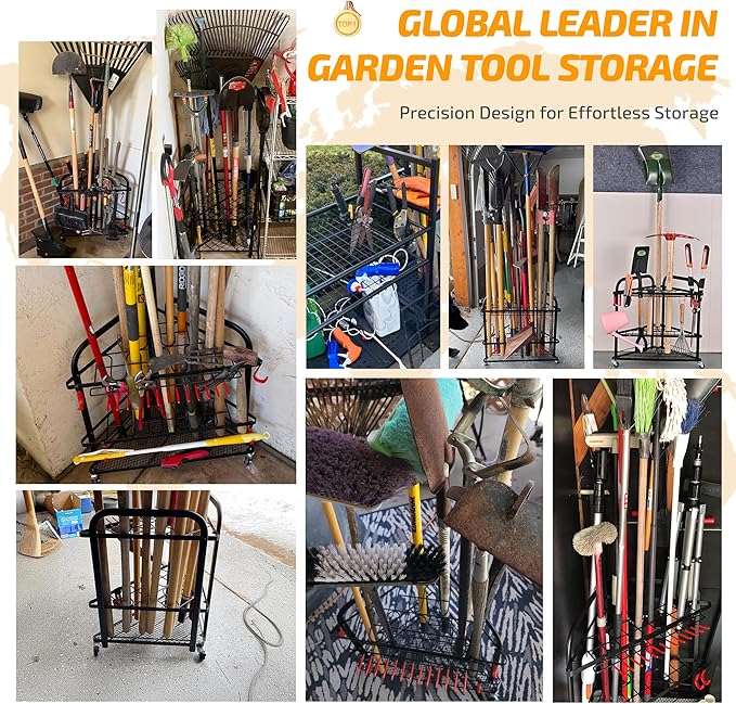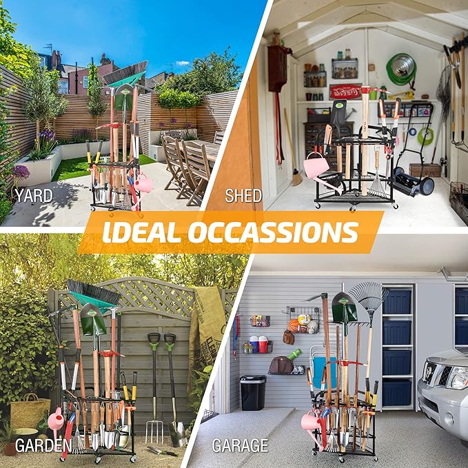 - 【Prompt Customer Service】: Measuring 24.6"L x 17.7"W x 24.6"H, our garden tool storage rack is designed to meet your needs. If you encounter any issues please don't hesitate to contact us. Our dedicated team is always available to provide professional solutions.
