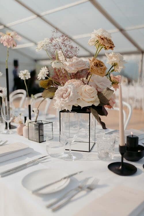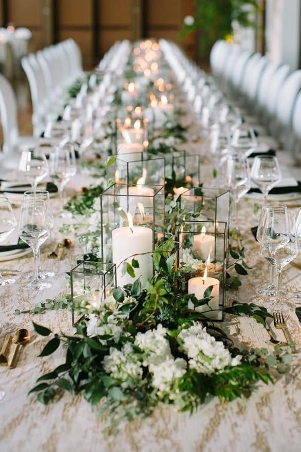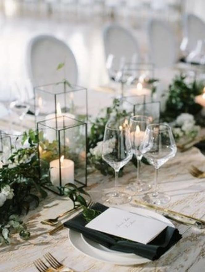 Set of 3 Square Glass Hurricane Candle Holders, Clear Glass Framed in Black-Finish Brass, Great for Home Decor and Wedding,Holiday Decor.