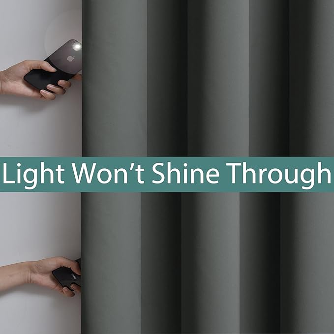 - 100% BLACKOUT:These magic blackout lined curtain panels are constructed with 2 layers fabric which can achieve 100% BLACKOUT. The heavyweight fabrics are made from 100 percent high quality polyester. The design of sewing in black liner backing makes the curtains thick enough to completely block out the 100% sunlight and UV ray, protecting individual privacy.