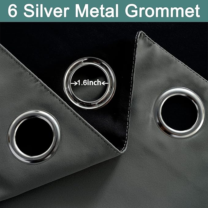 - PACKAGE MADE:2 panels per package. Each Lined Curtain measures 42" wide x 63" long. 6 Silvery Grommets per panel. This silvery grommet (1.6 inch inner diameter) fits many rods. Easy to hang and smooth to slide. The simple design gives people a sense of ease.