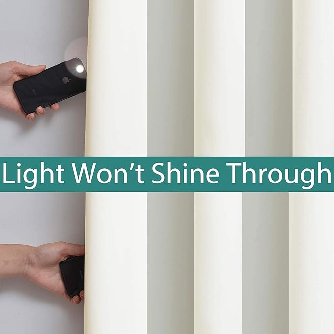 Yakamok 84 Inch Length 100% Blackout Curtains for Bedroom, 2 Thick Layers Thermal Insulated Grommet Total Blackout Drapes with Black Liner for Living Room (42Wx84L,Cream, 2 Panels)