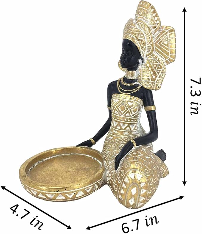 - [An ideal decoration with a thought] Lescafita African Design Tribal Black Lady Figurines with African Tribal Totem Candle Holders Status decoration enrich with African cultural aspects of spirituality. The Woman Decor with Candle Holder Sculpture is a combination of African cultural elements. It is not only providing another light source but also symbolizes hopes and endurance in human spirits.