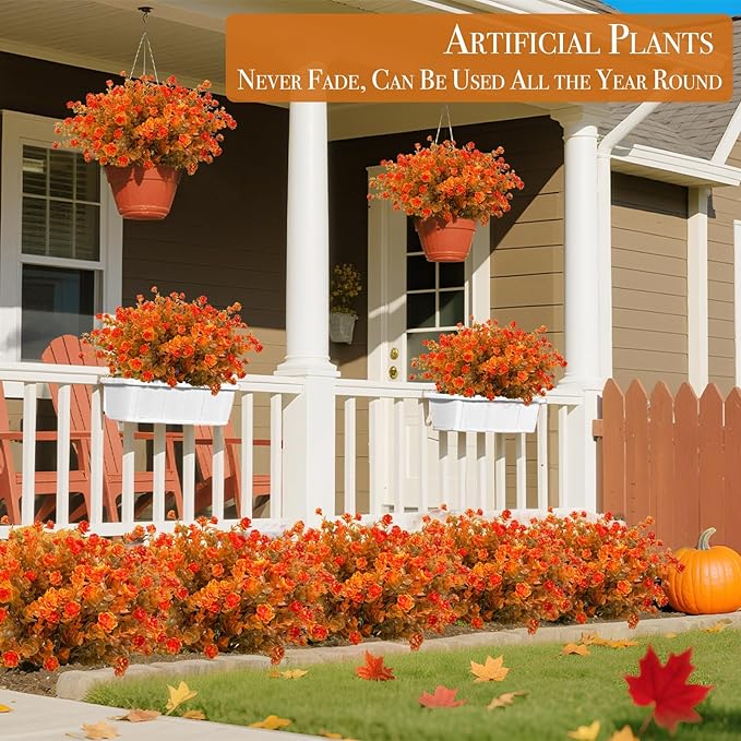 - Forever Outdoor Fall Flowers: Faux fall flowers made plastic material, UV resistant and never fade, more realistic appearance and vibrantly colored; withstands wind, rain, sun