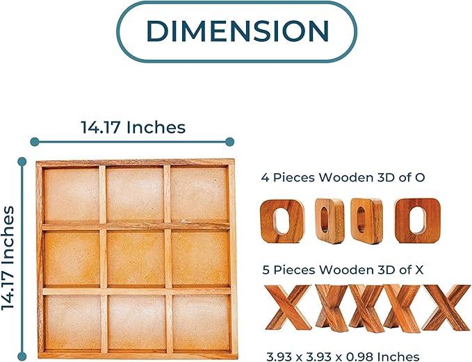 - Premium Large Board Game - Made with high-quality materials, this large tic tac toe game, measures 36x36x1.7 cm, ensures hours of fun while prioritizing the new level of fun with smooth texture of handcrafted wood.