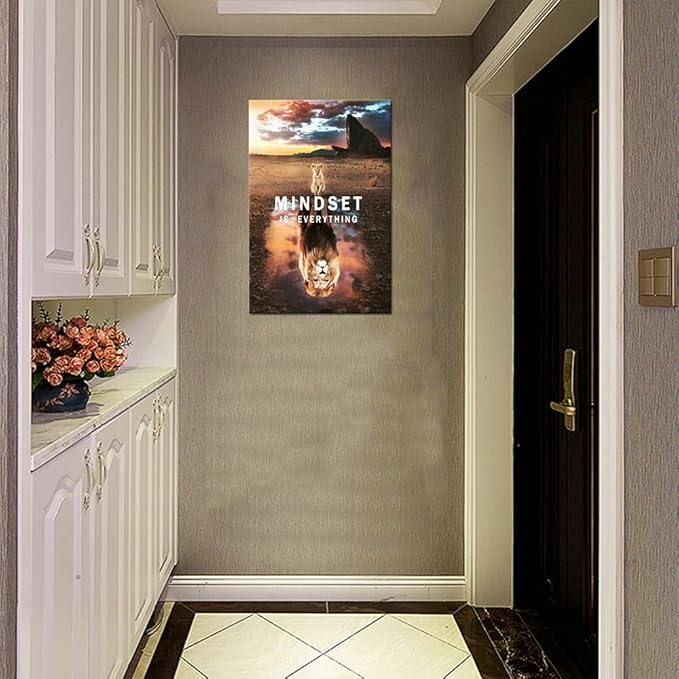 Motivational Inspiration Posters Lion king Mindset is Everything Wall Art Canvas Painting Print Poster Artwork Home Decoration Living Room Bedroom Office Frame Ready to Hang[24''W x 36''H]