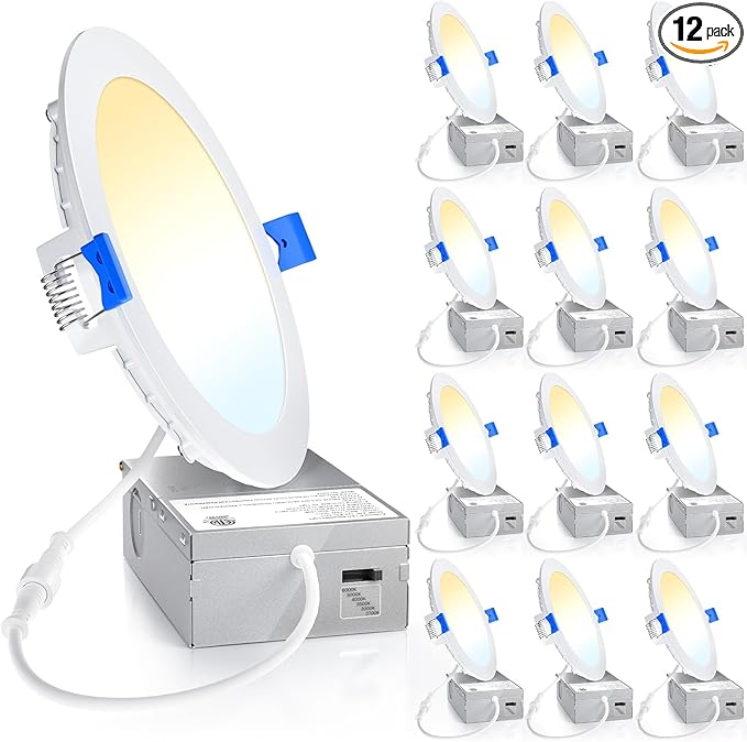 Ensenior 12 Pack 6 Inch Ultra-Thin LED Recessed Light with Junction Box, 2700K-6000K Selectable, 12W 110W Eqv, Dimmable, 1050LM High Brightness - ETL Certified