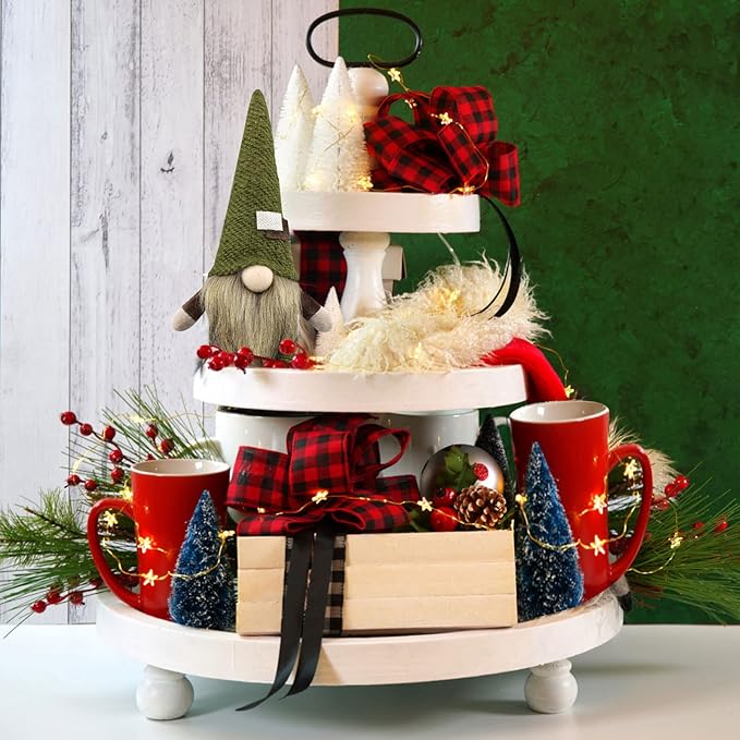 Christmas Gnomes Plush Xmas Winter Decorations Handmade Elf Dwarf Figurines for Home Kitchen Farmhouse Tiered Tray Holiday Festival Party Scandinavian Tomte (Brown Beard)