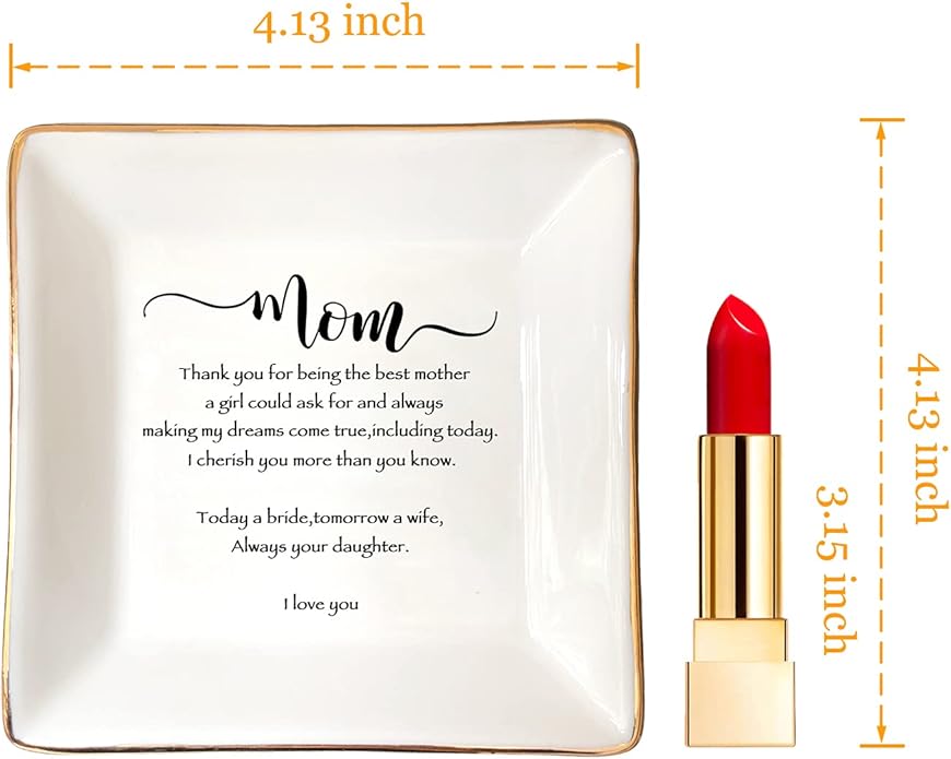 - Add a touch on wedding day, birthday, or mother's day with this sentimental words printed ring dish.
