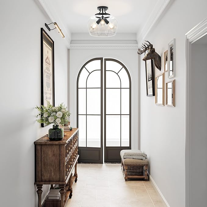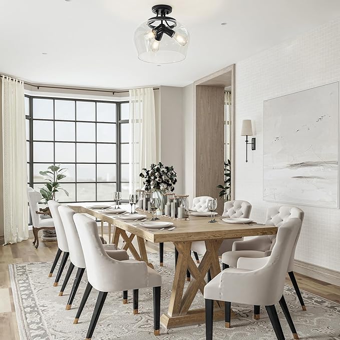 - Modern Ceiling Light: Vonluce’s semi-flush mount light pairs a sleek matte black canopy with a clear glass shade, adding a modern touch to your decor. It provides bright, unobstructed illumination, creating an open and inviting atmosphere in your room