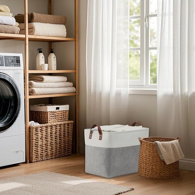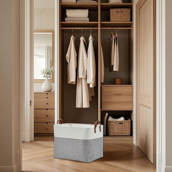 - Premium Bin Material: DECOMOMO's closet storage bins feature a sturdy metal frame, extra thick EVA exterior, polyester interior, 2.5mm thick bottom base, and faux leather handles capable of holding up to 25 lbs.