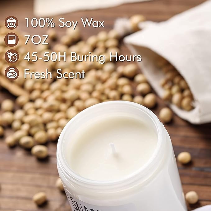 - 【Natural Soy Wax】:This 100% Natural Soy wax candle is non-toxic with fresh fragrance & long burning, made with organic essential oils and has a 100% cotton wick