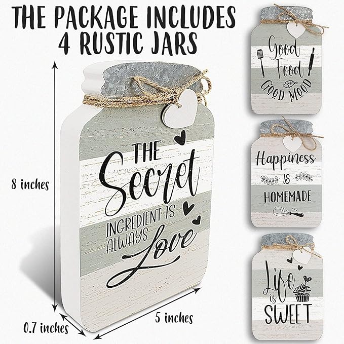 - [PREMIUM CRAFTSMANSHIP IN RUSTIC WALL DECOR] Expertly crafted, this set of 4 farmhouse kitchen wall decor pieces brings refined rustic charm to your home. Designed to turn ordinary kitchen wall decorations into a warm, personality-filled statement, each piece is made with care and detail—perfect for those who appreciate genuine kitchen wall art.