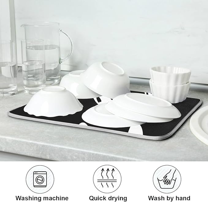- Material: The printed surface of the kitchen tableware drying mat is made of high-quality polyester.The middle layer of the kitchen drying pad is composite sponge, which can quickly absorb moisture and keep the kitchen table dry and tidy.