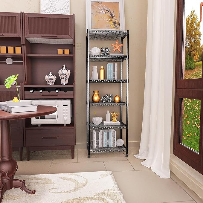 GIOTORENT 6-Tier Storage Shelves Standing Shelving Metal Units, Adjustable Height Wire Shelf Display Rack for Pantry Laundry Bathroom Kitchen 16.6” x 11.8” x 63”, Black
