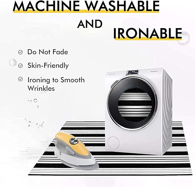 - 【Premium Quality】: OJIA 5' x7' black and white striped living room rug is made from woven cotton fabric that is soft and comfortable to touch, makes your doormat color bright, stain-resistant, shrink-proof & easy to air dryer.