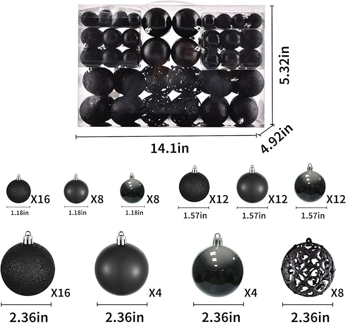 - 【MULTIPLE TREE BALLS】Our Christmas balls ornaments have 4 different styles: matte, shiny, hollow and glittery. Different surface treatment makes your Christmas tree unique and beautiful.