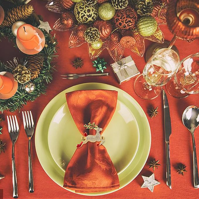 - Sturdy Napkin Rings:These christmas napkin holders are made out of durable metal and rhinestones,solid in construction and durable to use, not easy to deform, break, waterproof and reusable.Each of rustic napkin rings is slightly different, bring a natural Christmas to the table, refresh your holiday table with our natural-inspired napkin rings that gather together a real the Christmas.
