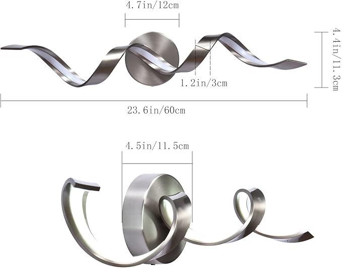 - 【Modern and Unique Spiral Design】Not an ordinary one-line bathroom light fixture, but a curved design that can add more chic decor to your modern space. The living room, bathroom, hallway are some of the ideal spaces where the LED wall lighting can shine!