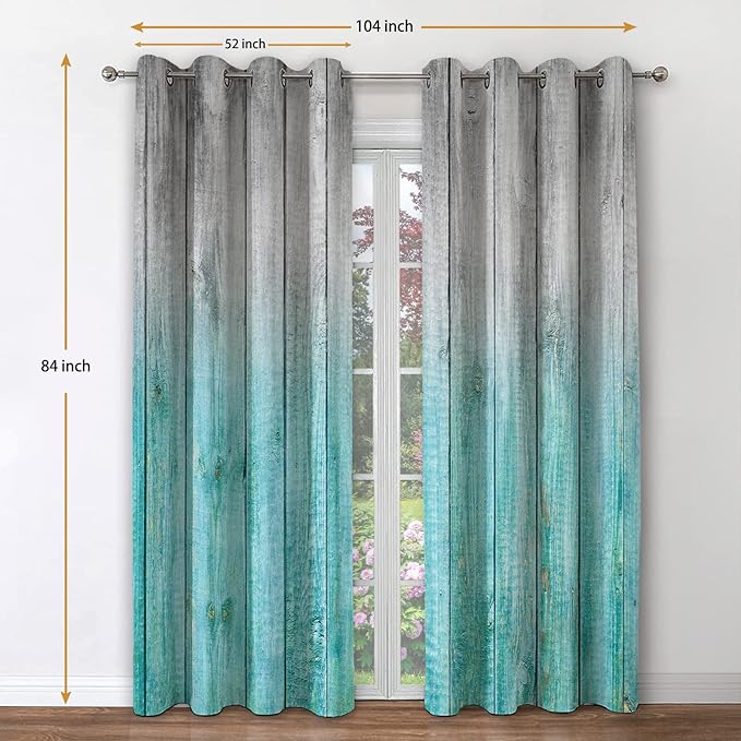 Jekeno Wooden Blackout Curtains Blue Gradient Wood Board of Farmhouse Village Rural Lodge Nature Retro Decor for Home Bedroom Living Room Grommet Window Drapes 2 Panel Set, 52"x84"