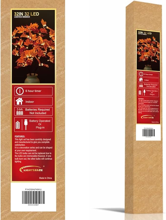 LIGHTSHARE 32IN 32LED Lighted Willow Twig Branch, Maple Leaf, Built-in Timer, USB Plug-in and Battery Powered, Décor for Home, Festival, Party, Christmas, Night Light