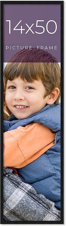 - Handcrafted Black Wood Picture Frame for Family Photos, Art Prints, Canvases, Documents, Kids Drawings, Diplomas, Certificates, and More Measuring 14x50 Inches