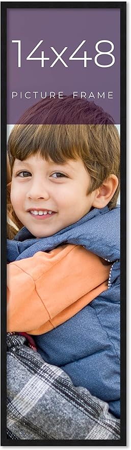 - Handcrafted Black Wood Picture Frame for Family Photos, Art Prints, Canvases, Documents, Kids Drawings, Diplomas, Certificates, and More Measuring 14x48 Inches