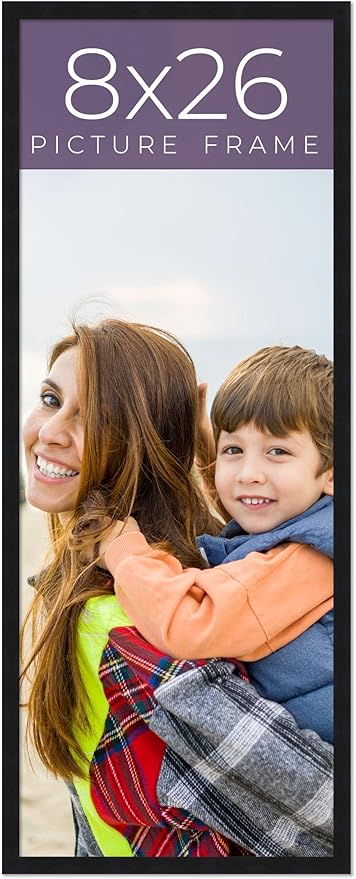 - Handcrafted Black Wood Picture Frame for Family Photos, Art Prints, Canvases, Documents, Kids Drawings, Diplomas, Certificates, and More Measuring 8x26 Inches