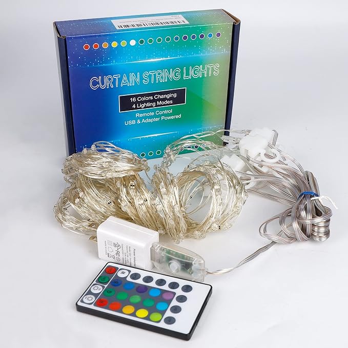 - Color Changing Christmas Window Curtain Lights: Add a wonderful Christmas wall backdrop as you decorate for your event with 9.8 x 9.8ft 300 LED sliver wire curtain fairy lights. The hanging curtain lights can change into 16 different colors, 4 different modes and 4 different Timer that will add a different vibe to your room.