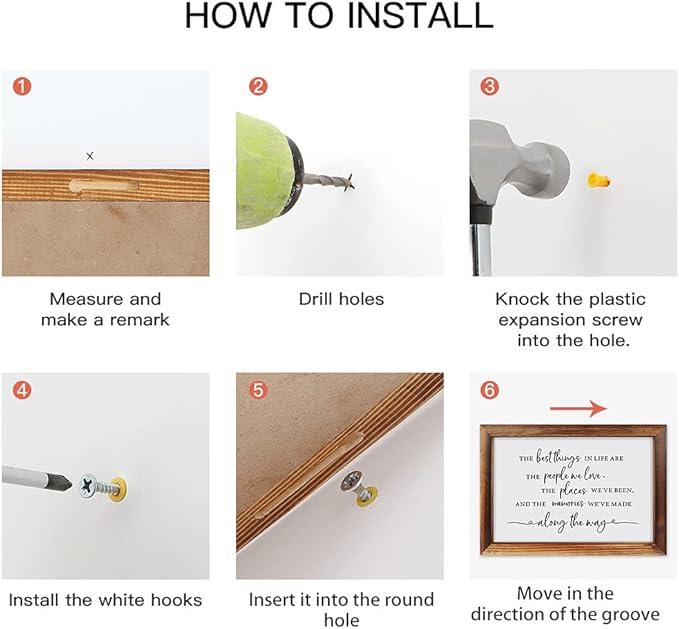 - HANG OR STAND—— Pre-installed hanging hooks makes this wooden bedroom wall decor easy to mount, and it is also able to stand on table, shelf, cabinet and everywhere.