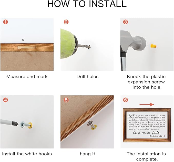 - HANG OR STAND——Pre-installed hanging hooks makes this corinthians 13 4-8 love is patient wall art easy to mount, and it is also able to stand on table, shelf, cabinet and everywhere.
