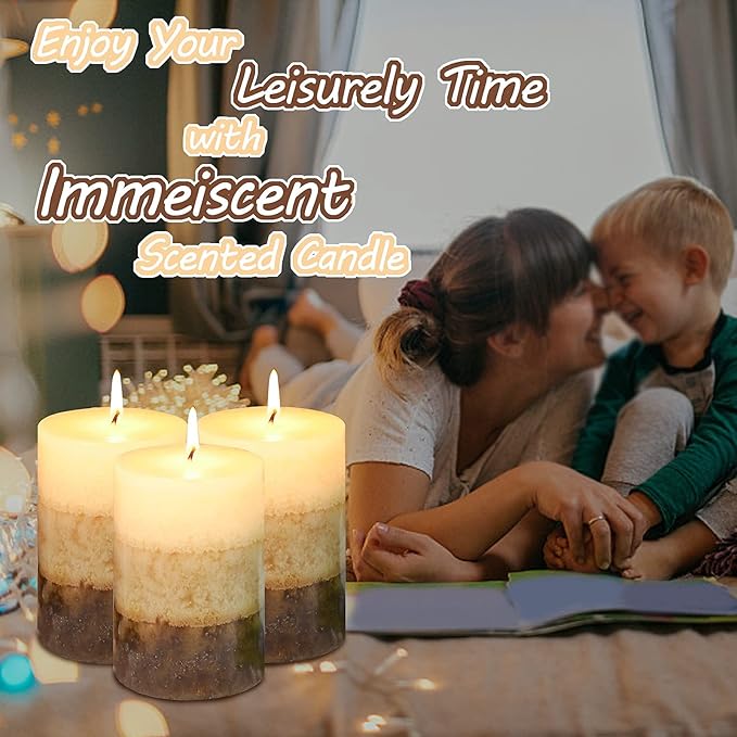 Pillar Candles Vanilla Cupcake Scented Immeiscent Aromatherapy Candle 50+ Hours Clean Burning Long Lasting Mottled Layered Candles for Home Scented SPA Restaurant Set of 3