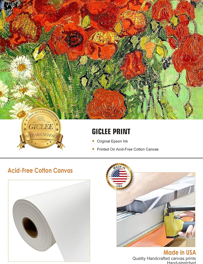 DECORARTS - Red Poppies and Daisies, Vincent Van Gogh Art Reproduction. Giclee Print on Canvas. Wall Art for Home. 40x32