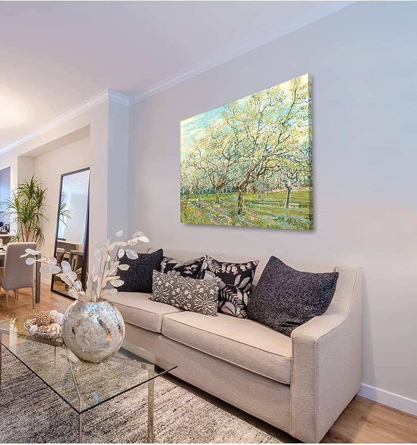 DECORARTS - The White Orchard, Vincent Van Gogh Art Reproduction. Giclee Print on Canvas. Wall Art for Home. 40x32