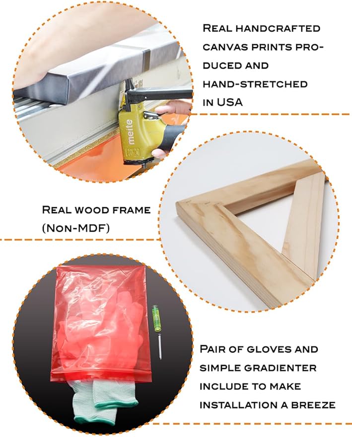 - Packed in a Sturdy Shipping Carton, Each Panel is Carefully Protected by Inflated Plastic Cushioning or Polystyrene Foam Installed at All Four Corners. All Wall Art are Ready to Hang, and Complimentary Professional Wall Art Hanging Tools, Such as: Gloves, Nails, and a Gradienter (level), are Included with Each Purchase.