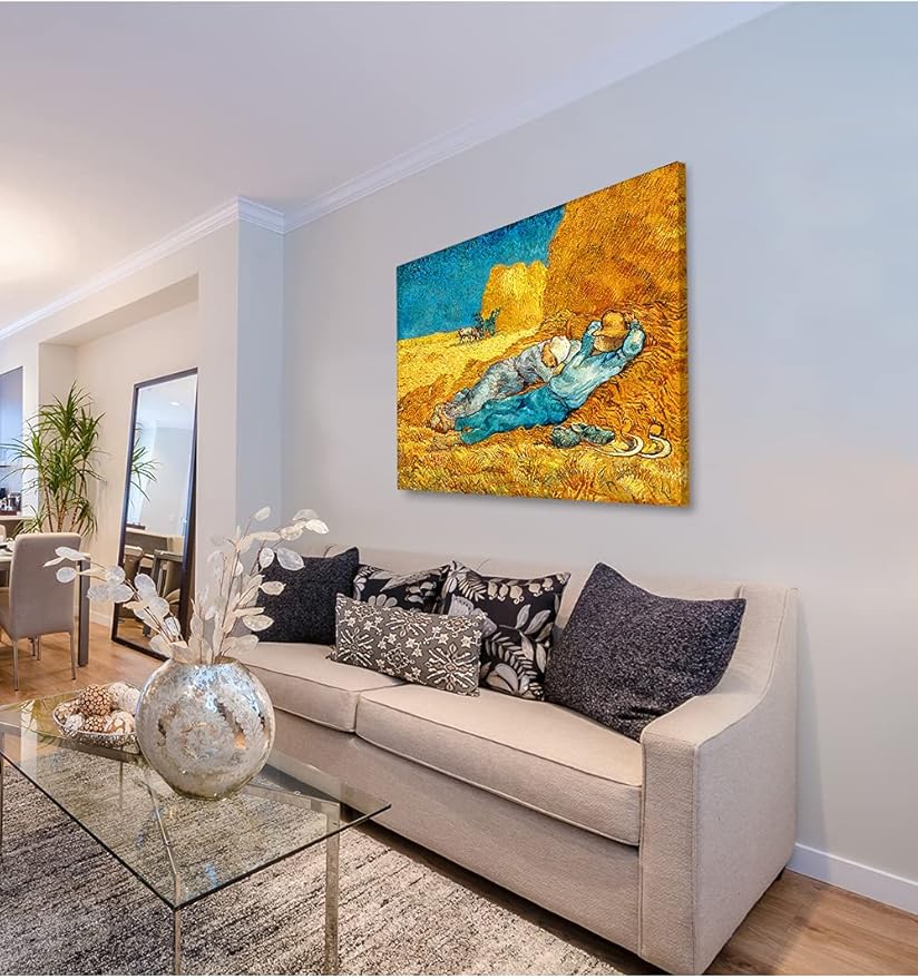 DECORARTS - Noon: Rest from Work, Vincent Van Gogh Art Reproduction. Giclee Print on Canvas. Wall Art for Home. 40x32
