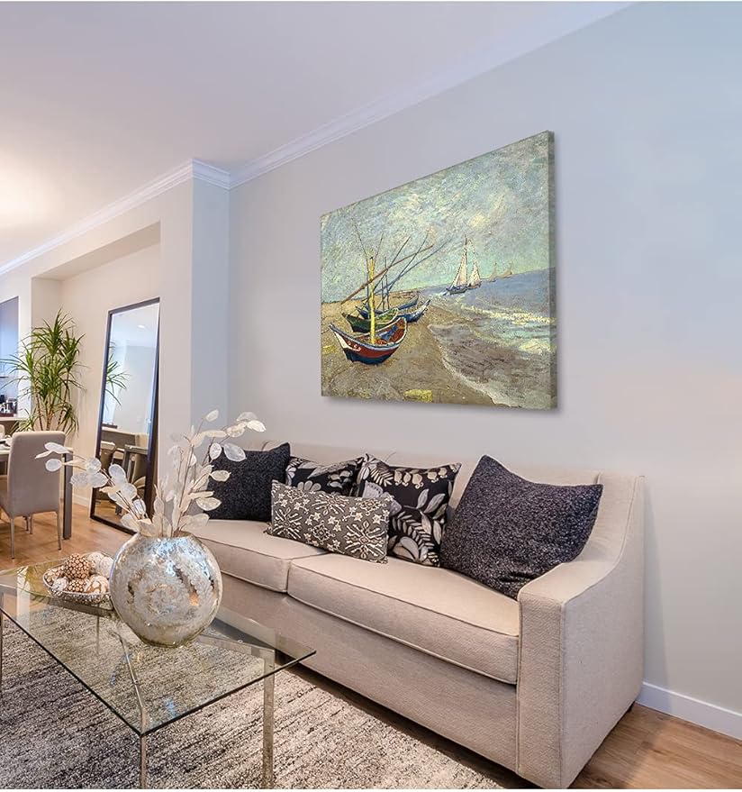 DECORARTS - Boats At Saintes Maire, Vincent Van Gogh Art Reproduction. Giclee Print on Canvas. Wall Art for Home. 40x32