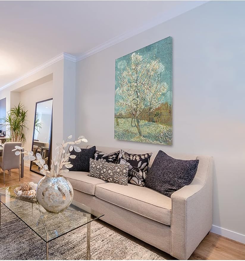 DECORARTS - The Pink Peach Tree, Vincent Van Gogh Art Reproduction. Giclee Print on Canvas. Wall Art for Home. 40x32