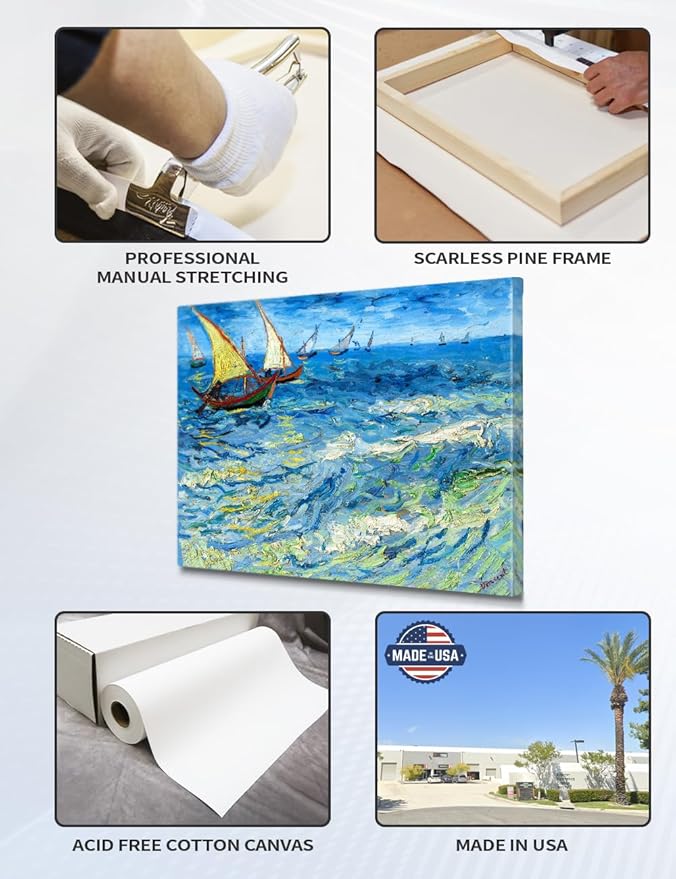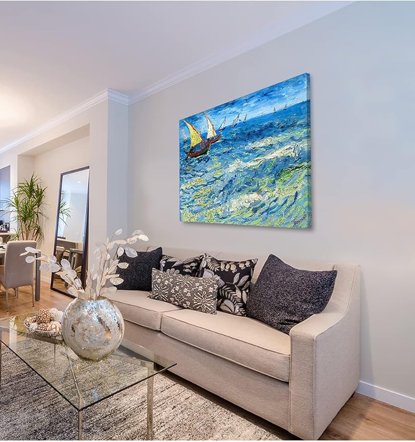 DECORARTS - Fishing Boats at Sea, Vincent Van Gogh Art Reproduction. Giclee Print on Canvas. Wall Art for Home. 40x32