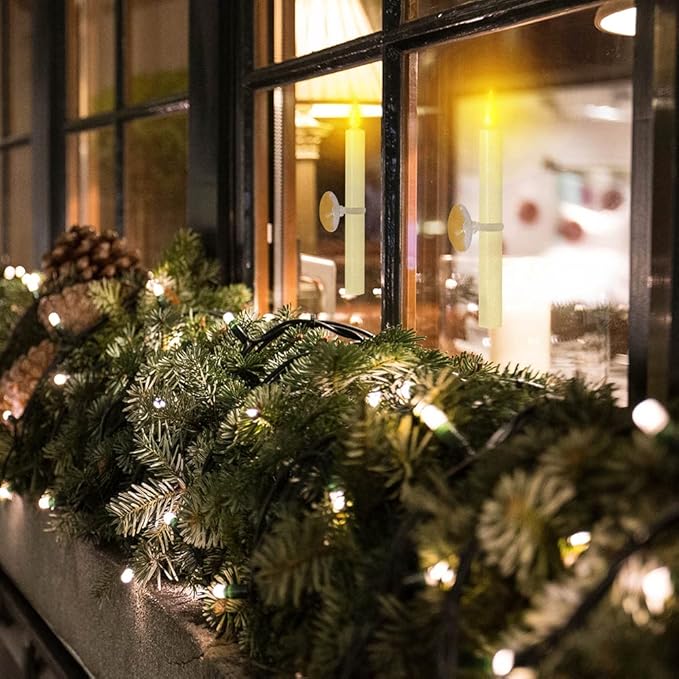 Strg Halloween Flameless Candles with Remote Timer, Christmas Window Taper Candles with Suction Cup and Magnetic Base Battery Operated Candle Sticks for Christmas Halloween Decorations (9 Pack)
