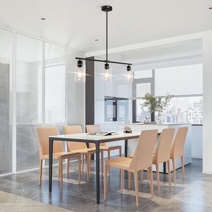 - 【Unique Rectangle Chandelier 】- Our kitchen island lighting is designed to be rectangular, so it is a wonderful choice for kitchen island, you will enjoy softer and more comfortable light with its clear glass shade.
