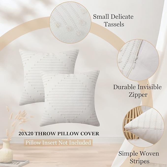 - Package Includes: Package includes 2 pieces beige and cream white boho pillow covers, 20x20 inches; pillow inserts are not included