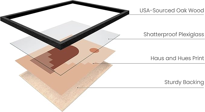 - PREMIUM QUALITY: To achieve the quality we’re known for, we use a giclée printing technique on 270 GSM solar white linen paper. The paper we use for abstract art is sourced in the US, and our inks are water-based and toxic-free. Our Pennsylvania oak frame adds the finishing touch to the boho wall prints. It’s equipped with plexiglass covered by protective film and two metal hangers for horizontal or vertical hanging. Trendy wall art is shipped in a durable box for protection while in transit.