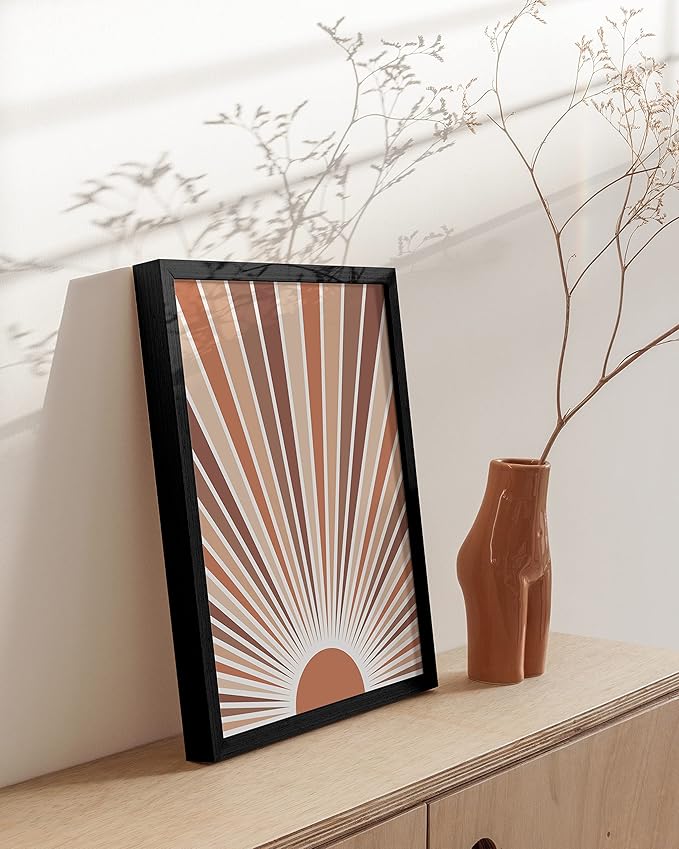 - VIBRANT RISING SUN WALL ART: Introduce boho flair into your home by displaying this mid-century modern decor alone or with other decors. Its neutral tones will blend seamlessly with minimalist-themed decor and will look great in spaces with a mix of Southwestern, traditional, and sun posters. To hang your framed print, simply unwrap your prints, place the art inside the frames, then use hanging strips or nails to set up your prints. Viola, your place will look sophisticated with your new art.