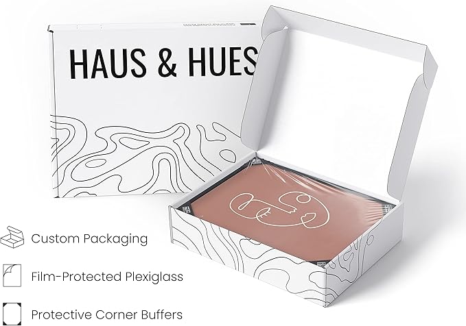 - PREMIUM QUALITY: To achieve the quality we’re known for, we use a giclée printing technique on 270 GSM solar white linen paper. The paper we use for boho art is sourced in the US, and our inks are water-based and toxic-free. Our Pennsylvania oak frame adds the finishing touch to the minimal wall art. It’s equipped with plexiglass covered by protective film and two metal hangers for horizontal or vertical hanging. Feminine wall decor is shipped in a durable box for protection while in transit.